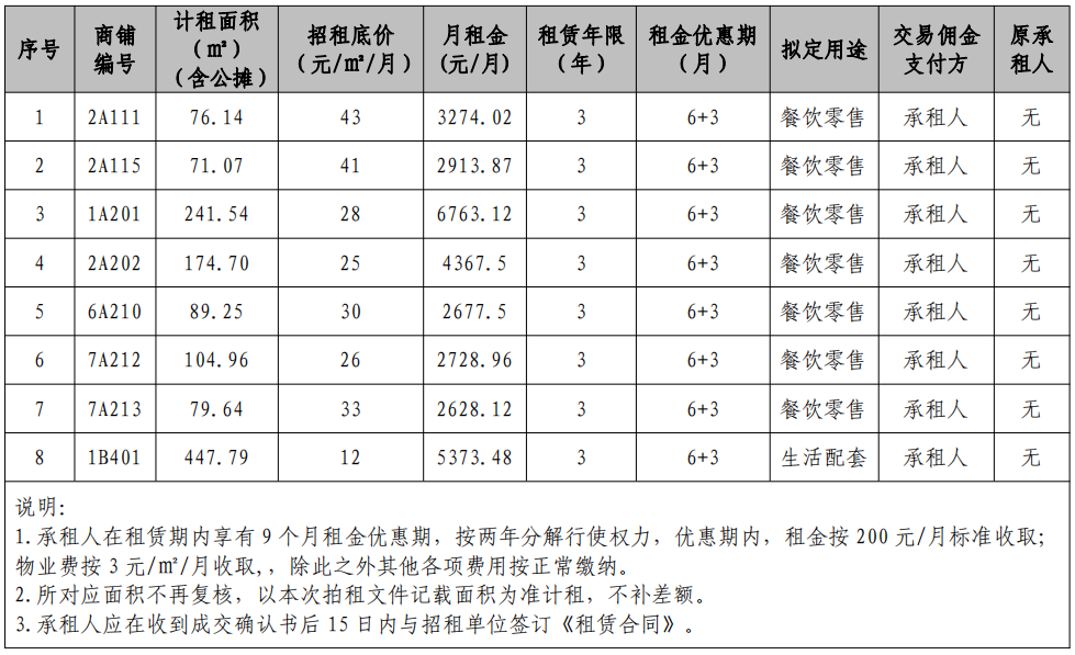 4.資產(chǎn)明細(xì):此次招租共計(jì)8處資產(chǎn):三明市沙縣區(qū)康養(yǎng)城商業(yè)廣場(chǎng)C11地塊B1幢商鋪7間,C12地塊G1棟商鋪1間;