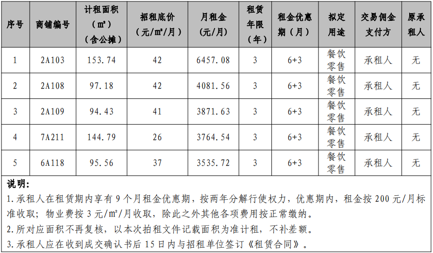 6.招租項目意向金:壹萬元(承租后轉(zhuǎn)為履約保證金);