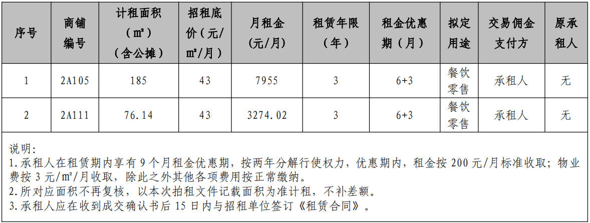 1.意向登記時(shí)間:即日起至招租公告報(bào)名截止日,逾期不予受理;